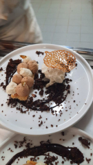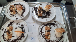 Ils ont également confectionné le dessert qui se déclinait en une mousse légère de chocolat gianduja et truffe, d’un crumble grué de cacao-noisette, et de crème glacée truffée. Un vrai régal !!