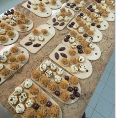 A l’occasion de la soirée truffe du jeudi 23 janvier 2025, les élèves de 1 PRO B ont réalisé des plateaux de mignardises composés de bonbons au chocolat à la truffe, de sablés diamant ivoire truffe et de tartelettes marron orange.