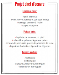 Les élèves de Terminale CAP Cuisine et HCR ont travaillés, chacun dans leur domaine de formation, à la réalisation de :