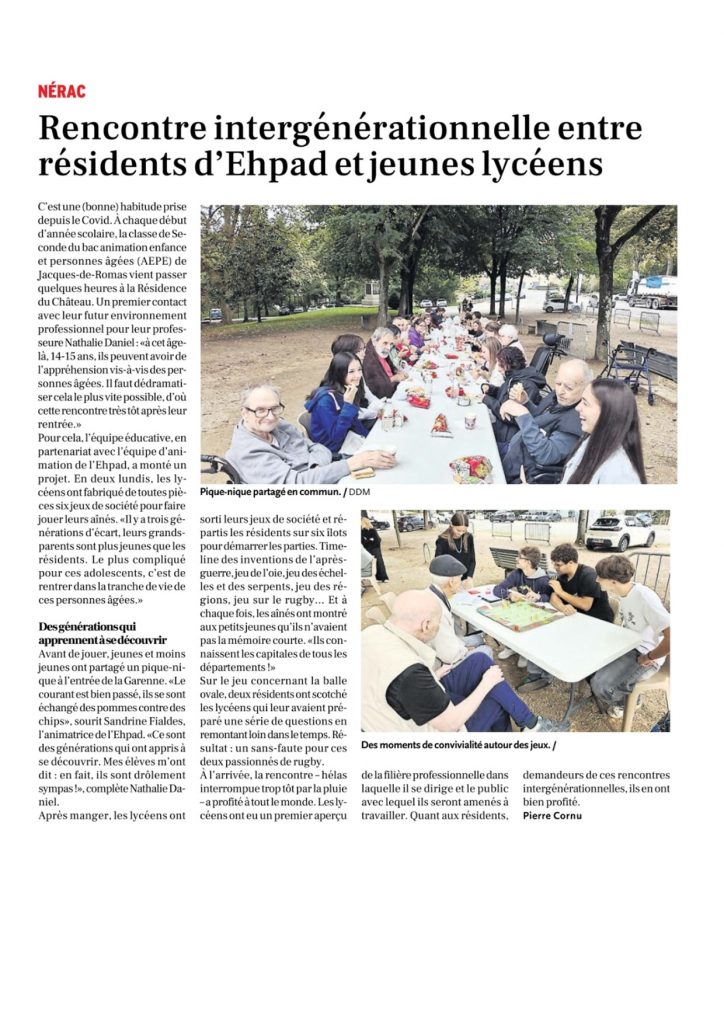 En ce début d’année scolaire, les élèves de 2nde Animation sont allés à la rencontre des personnes âgées de l’EHPAD du Château à Nérac.