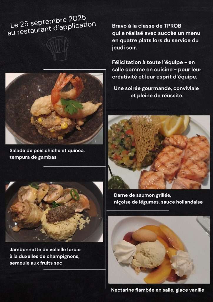 Soirée du jeudi 25 septembre au Restaurant d’application avec les TPROB