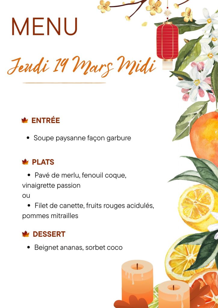 Tous les menus du mois de Mars